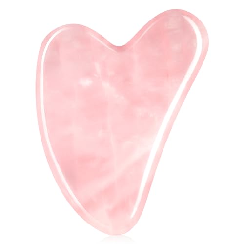 Flagest Gua Sha - Facial Gua Sha Stone - Rose Quartz Gua Sha - Heart Shape Stone Ansiktsbehandling - Anti-rynkmassageverktyg för ansikte - Guasha för ansiktsmassage (rosa)