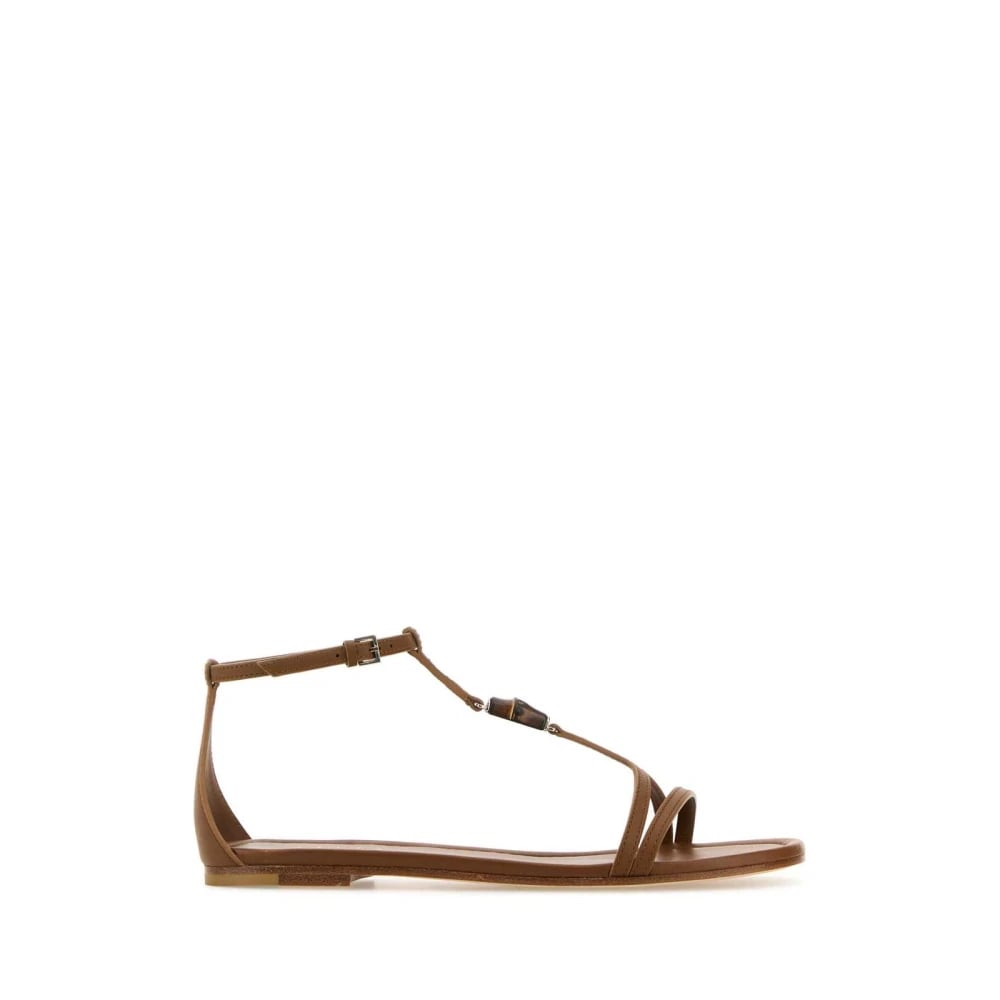 Gucci, Skor , Dam, 39 EU, Läder, Bamboo Detail Flat Sandaler