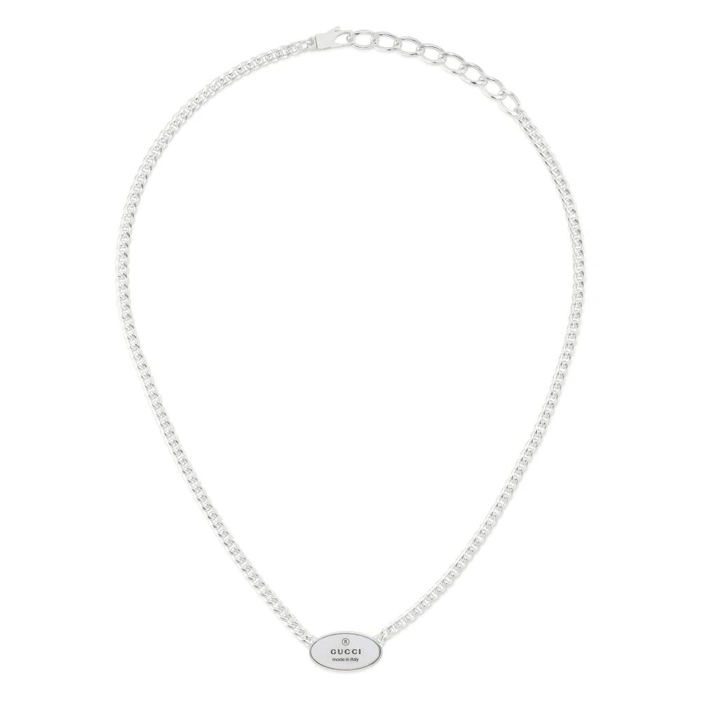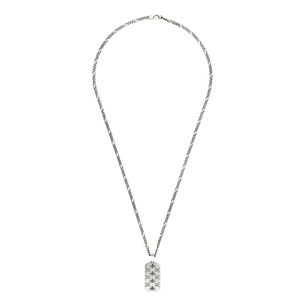 Gucci, Accessoarer , Dam, ONE Size, Halsband med tag i sterlingsilver med bi och Double G motiv