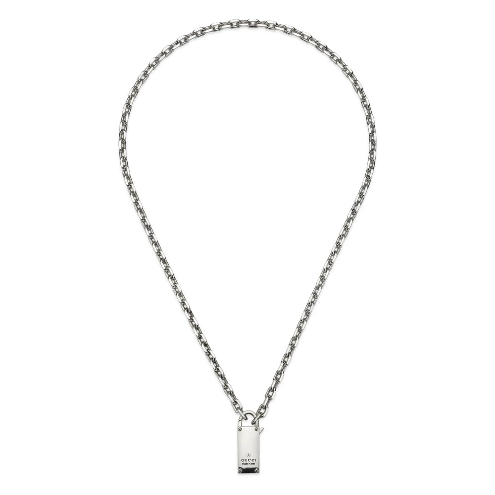 Gucci, Accessoarer , Dam, ONE Size, Varumärke halsband i sterlingsilver med hänglås motiv och detalj_50cm
