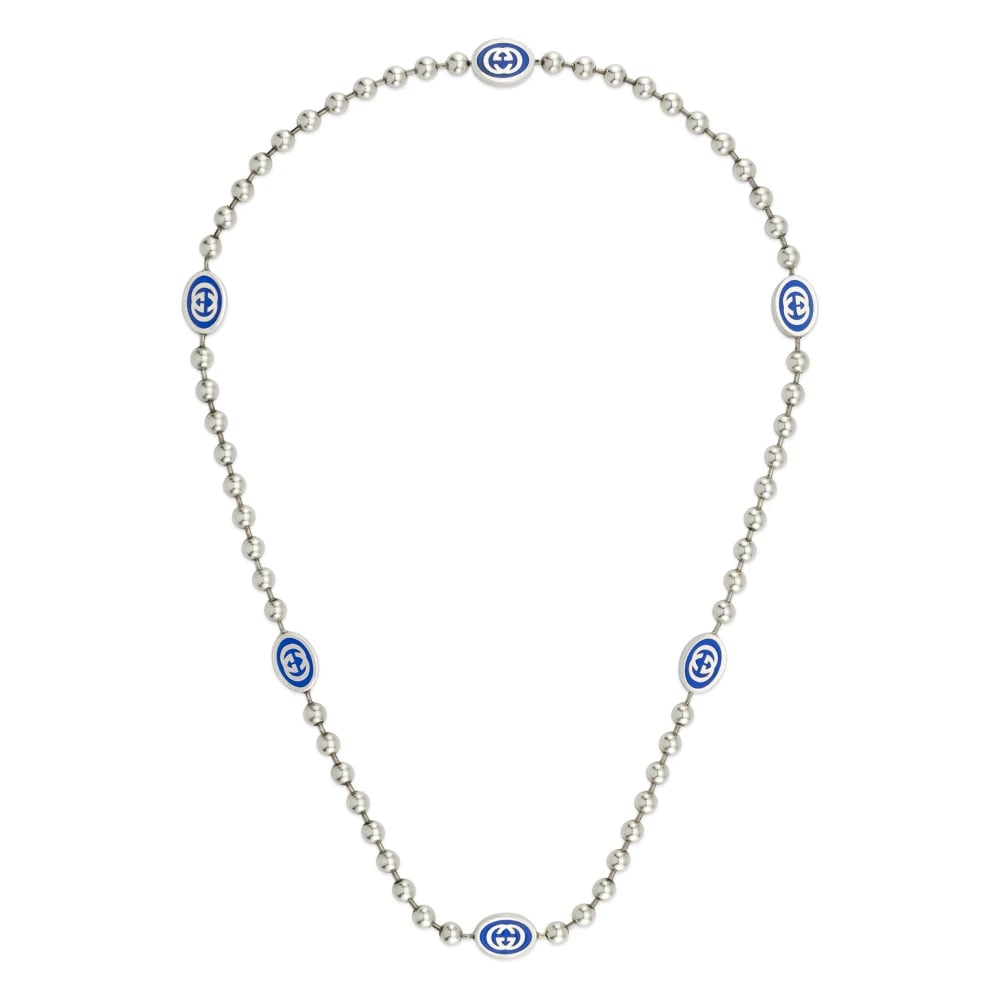 Gucci, Accessoarer , Dam, ONE Size, Ybb527399001 - Argento 925, Madreperla, Topazio, Resina - Halsband med Interlocking G hänge i blankt åldrat sterlingsilver, pärla, blå topas och turkos harts