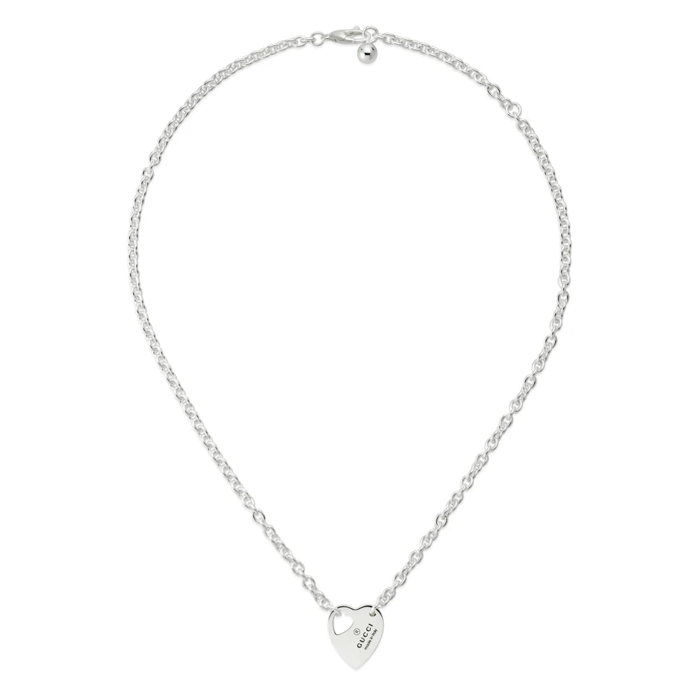 Gucci, Accessoarer , Dam, ONE Size, Varumärke halsband i sterlingsilver med hjärtmotiv och varumärkesdetalj_40/45 cm