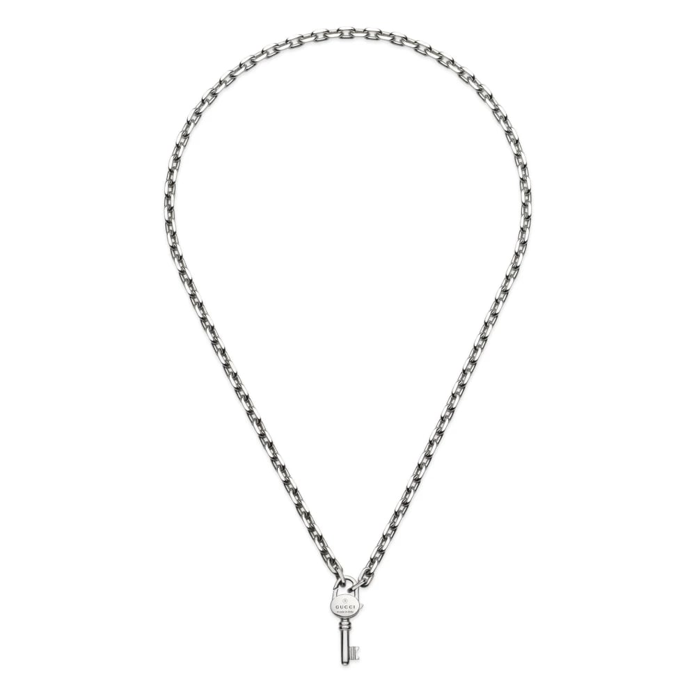 Gucci, Accessoarer , Dam, ONE Size, Varumärke halsband i sterlingsilver med nyckelmotiv och varumärkesdetalj_50cm