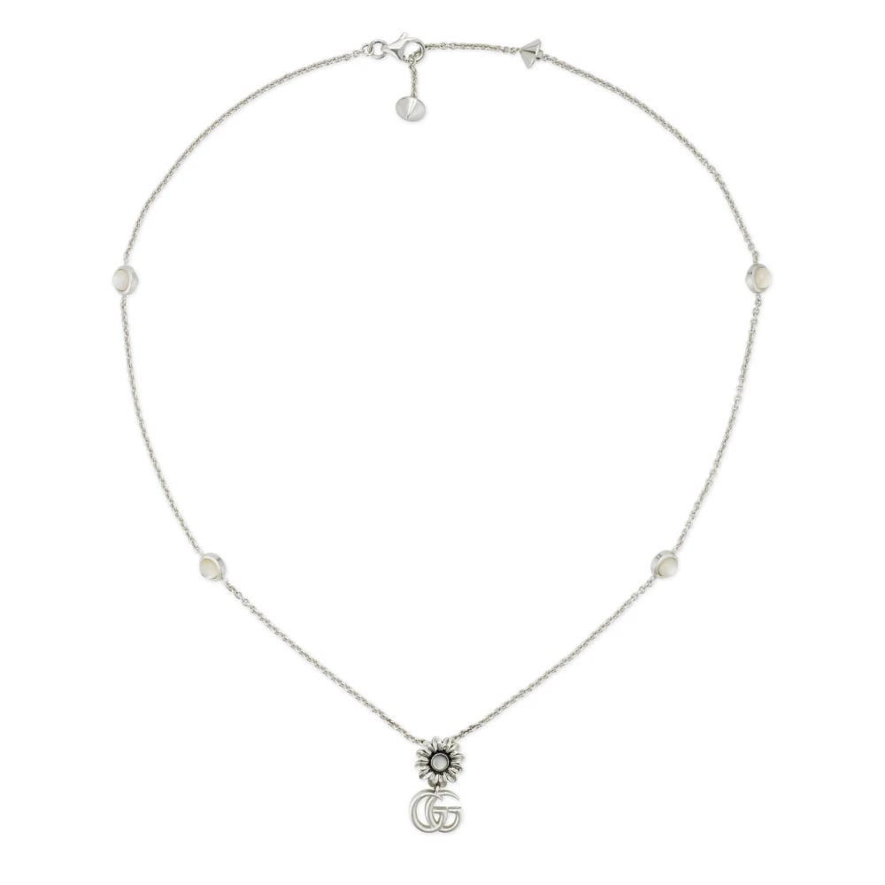 Gucci, Accessoarer , Dam, ONE Size, Halsband med dubbelt G och blomsterhänge