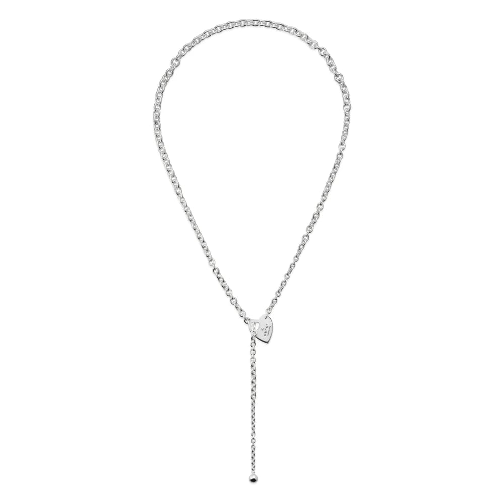 Gucci, Accessoarer , Dam, ONE Size, Varumärke Lariat halsband i sterlingsilver med hjärtmotiv