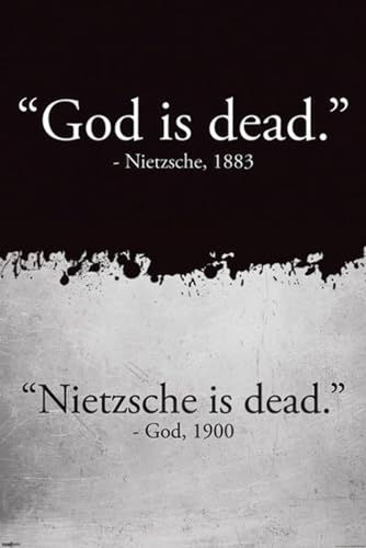 Affisch med meddelande "Gud är död - Nietzsche, 1883; Nietzsche är död - Gud, 1900" (på engelska, stort format)