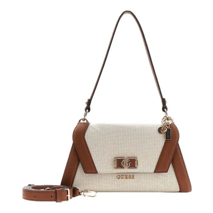 GUESS Axelväska beige brun för kvinnor - Karnilla Flap Shoulder Bag Natural / Cognac 333397