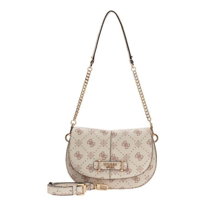 GUESS Axellväska i krämbeige för kvinnor - Carrie Logo Flap Shoulder Bag Vanilla Logo 331230