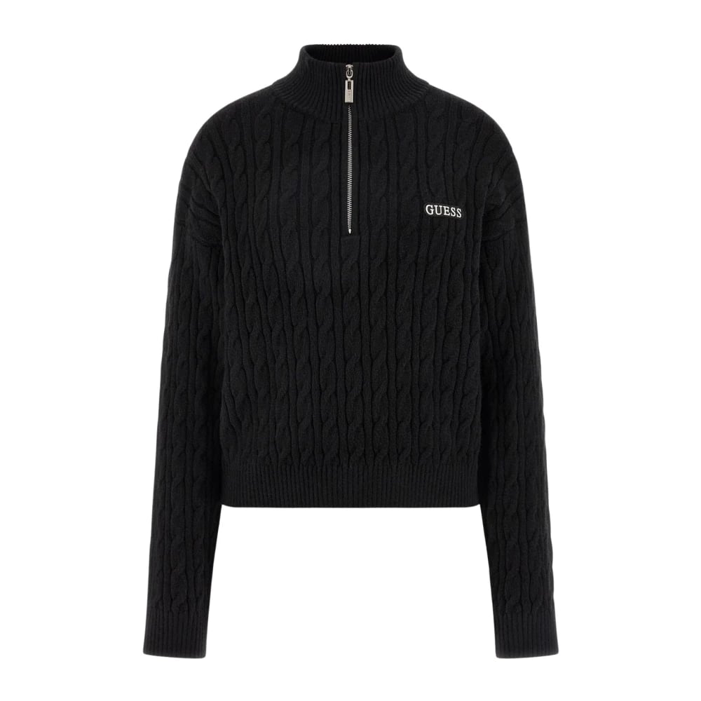 Guess, Stickade Tröjor , Dam, L, Svart Kabelstickad Tröja Halv Dragkedja Lavinia