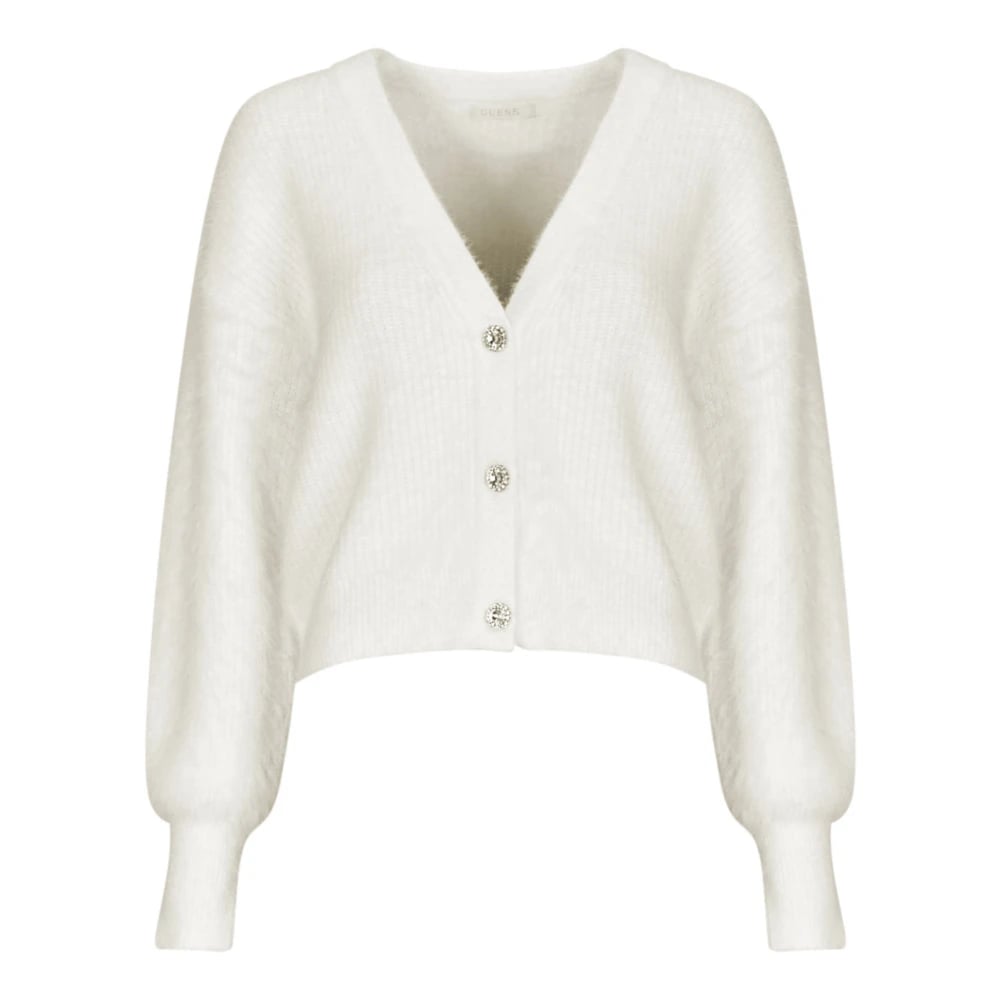 Guess, Stickade Tröjor , Dam, M, Fuzzy Vit Juvelknapp Kofta