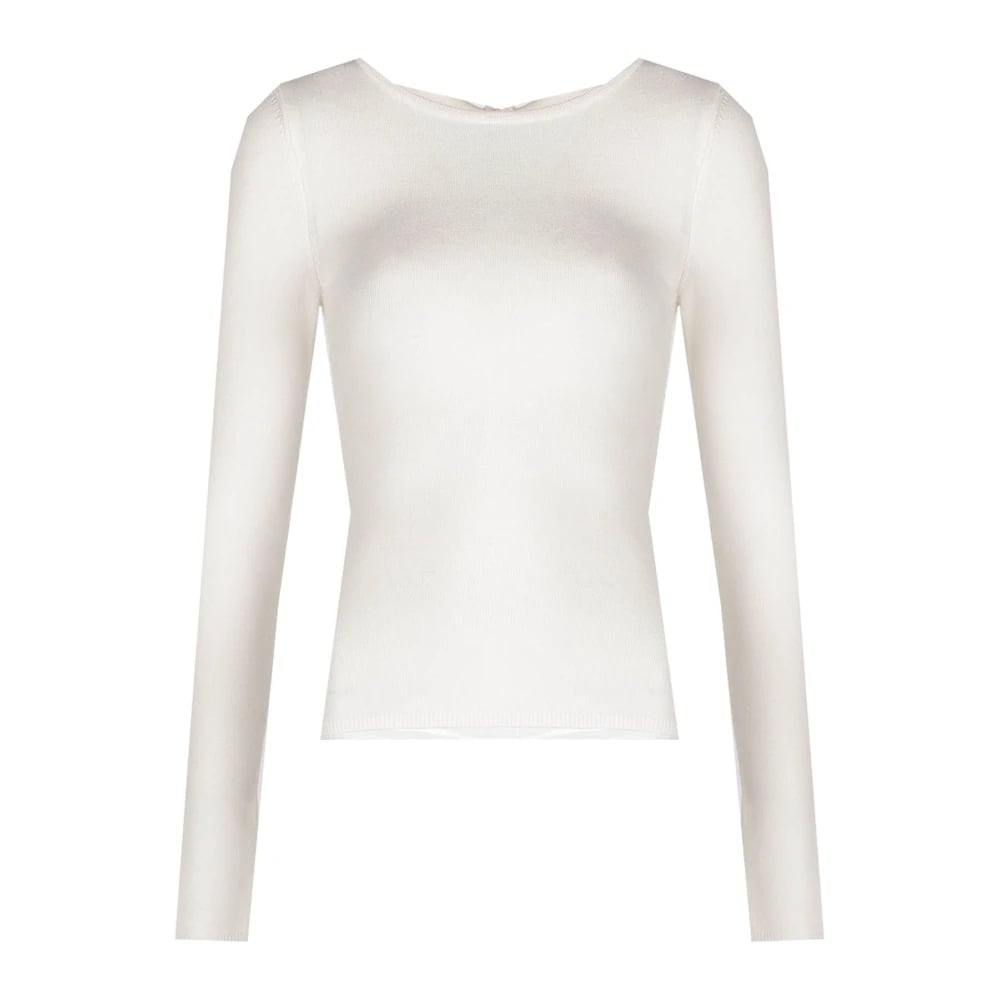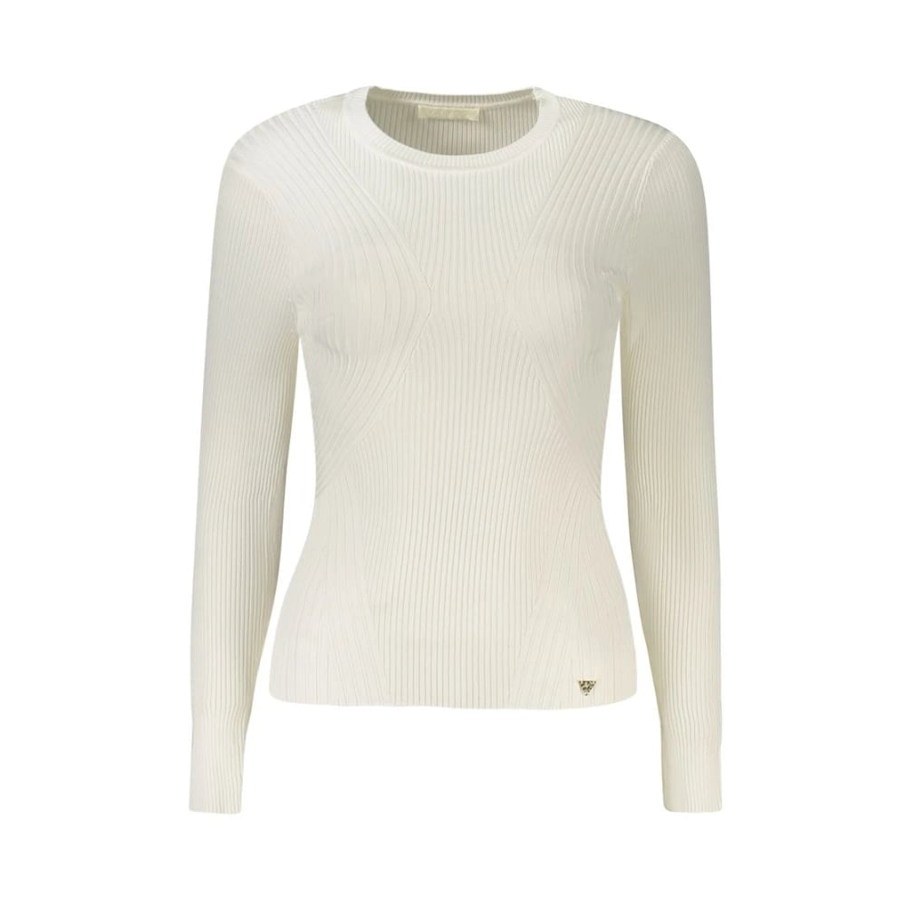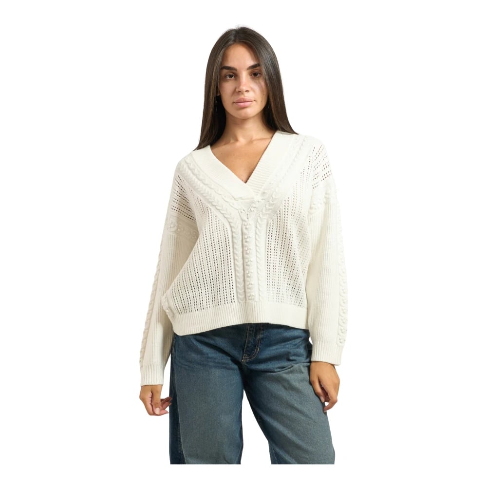 Guess, Stickade Tröjor , Dam, L, Vit V-ringad Kabelstickad Tröja