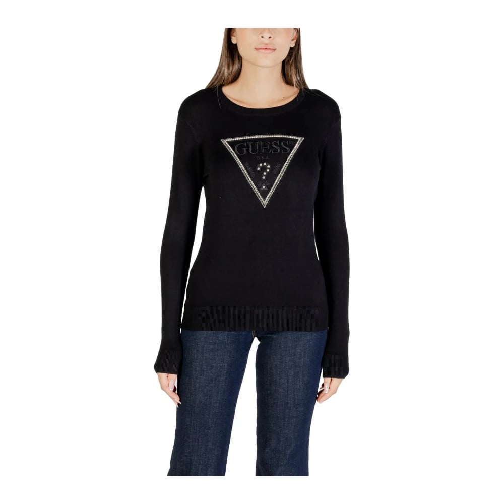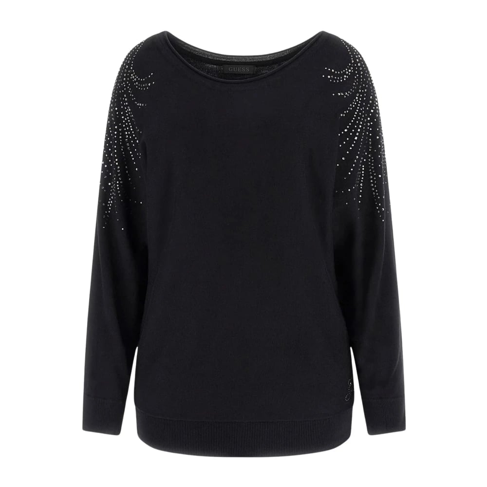 Guess, Stickade Tröjor , Dam, M, Rhinestone Viscose Sweater