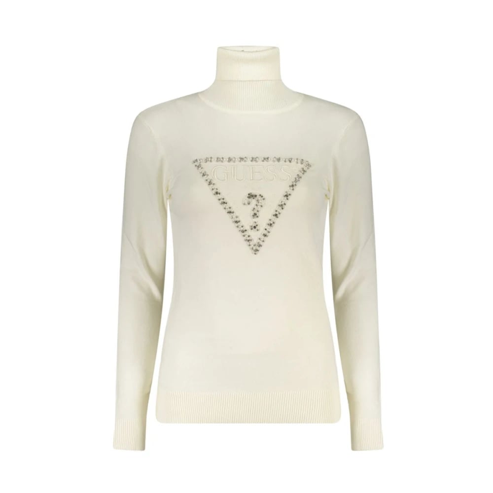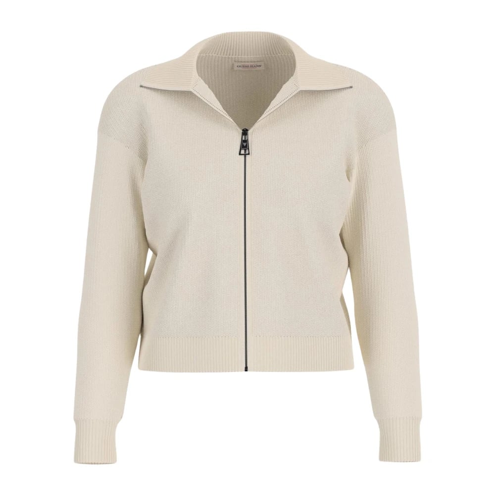 Guess, Stickade Tröjor , Dam, L, Vit Tröja med Dragkedja Krage