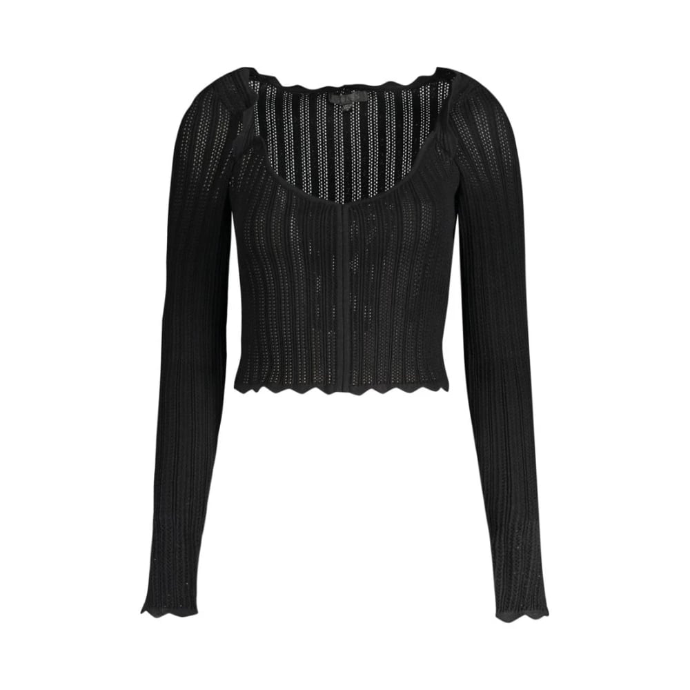 Guess, Stickade Tröjor , Dam, S, Svarta Tröjor med Långa ärmar