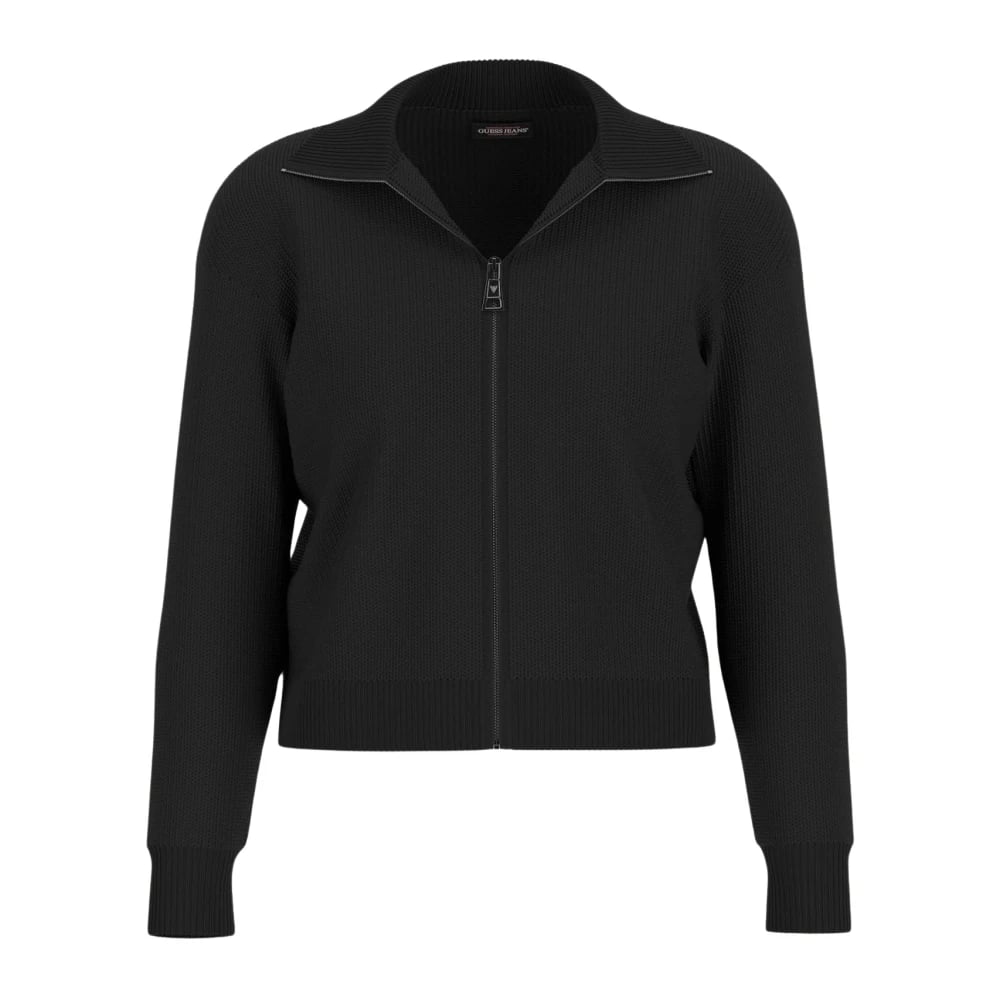 Guess, Stickade Tröjor , Dam, L, Svart Tröja med Dragkedja Krage
