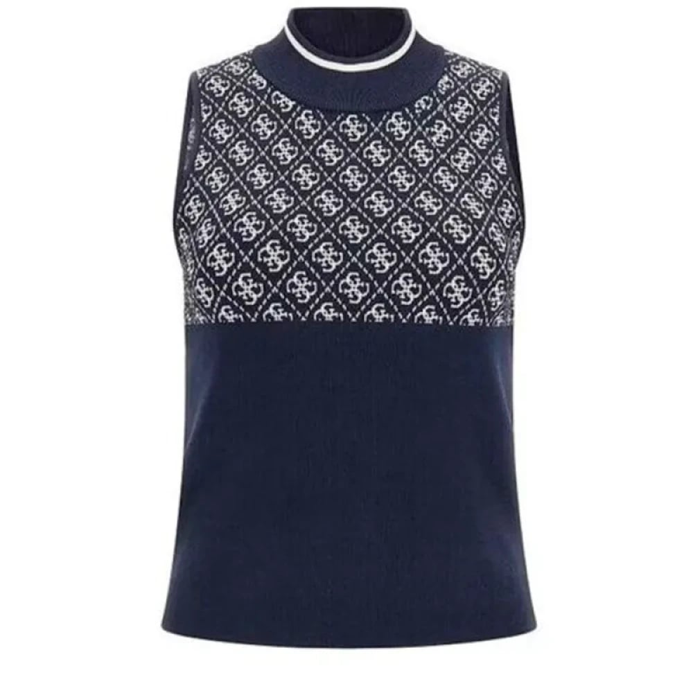 Guess, Stickade Tröjor , Dam, S, Elegant ärmlös tröja med golf
