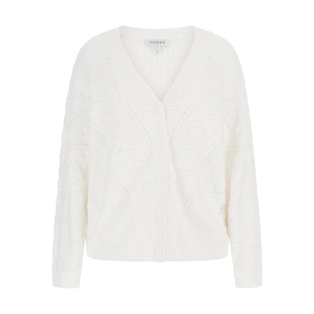 Guess, Stickade Tröjor , Dam, M, Elegant Pointelle Cardigan för Kvinnor