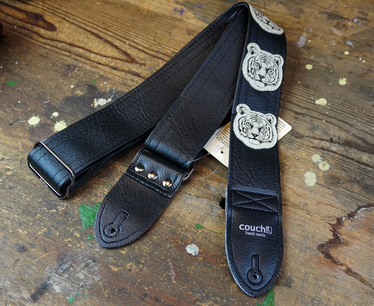Couch Guitar Straps Tiger Strap - Black W/ White Tigers