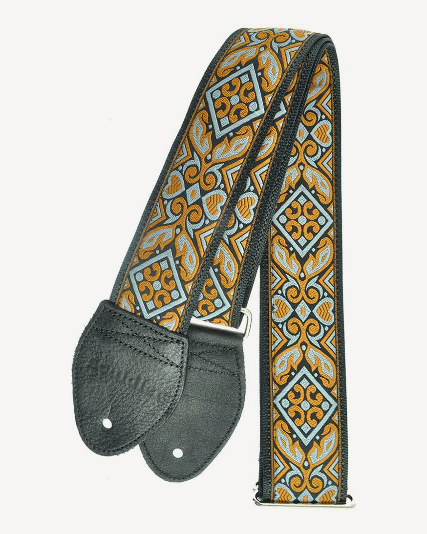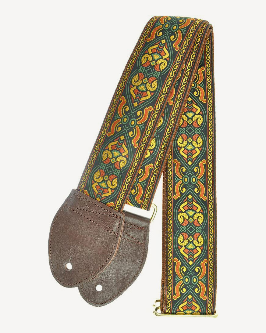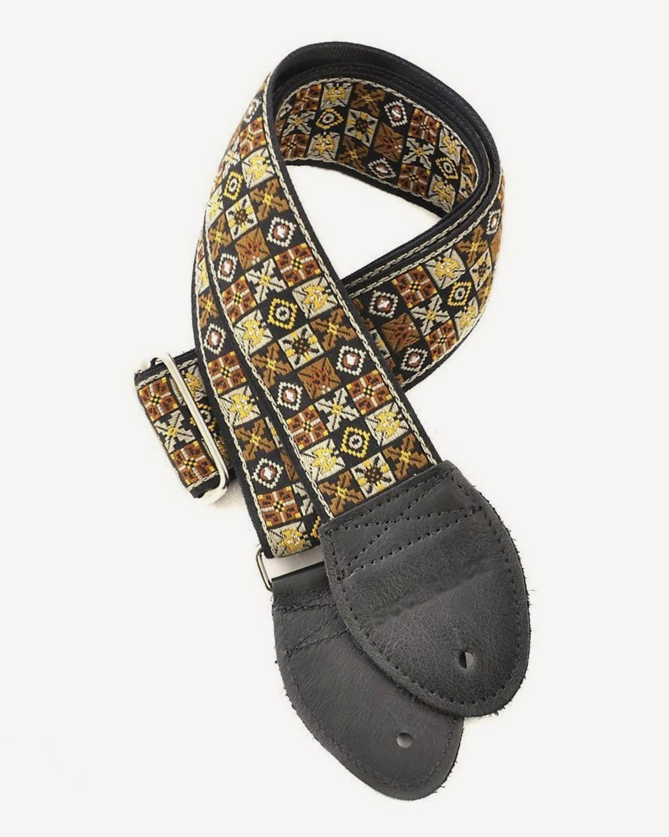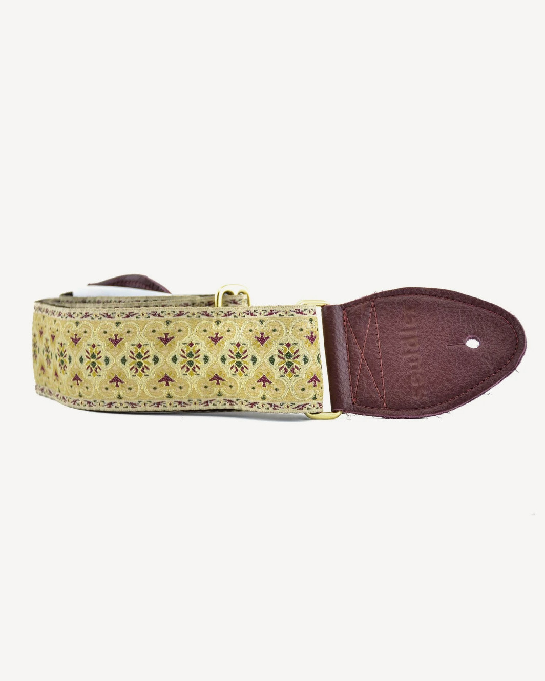 Souldier Persian Gold Guitar Strap (Black Belt & Burgundy Leather Ends)