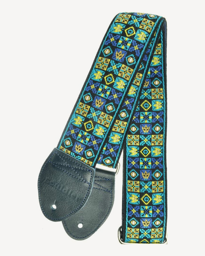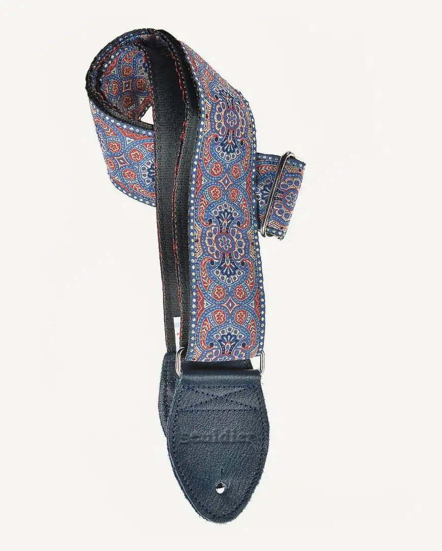 Souldier Arabesque Indigo Guitar Strap (Black Belt & Navy Leather Ends)