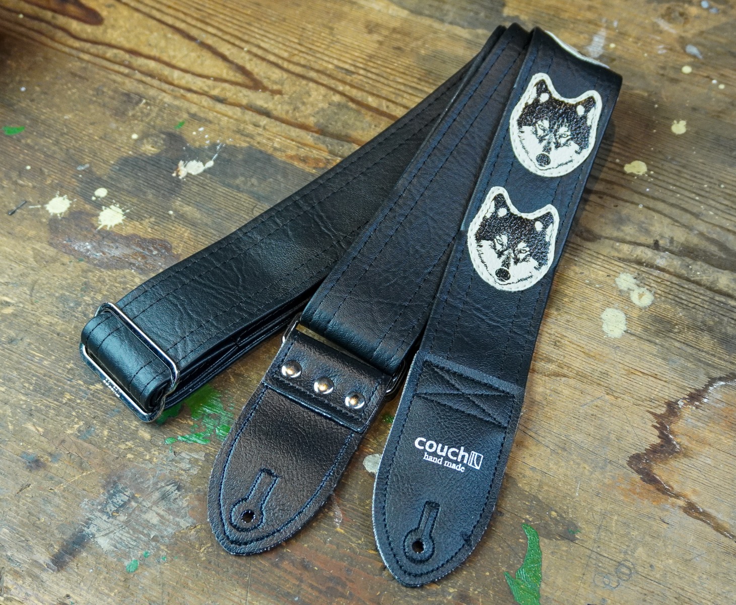Couch Guitar Straps Wolf Strap - Black W/ White