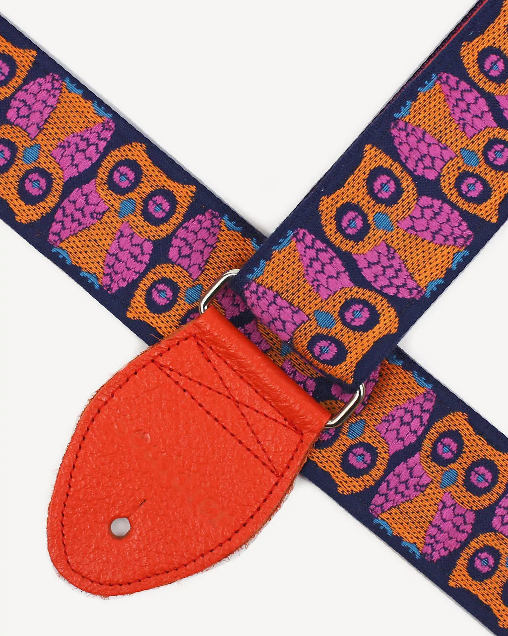 Souldier Owls Orange Guitar Strap (Orange Belt & Orange Leather Ends)