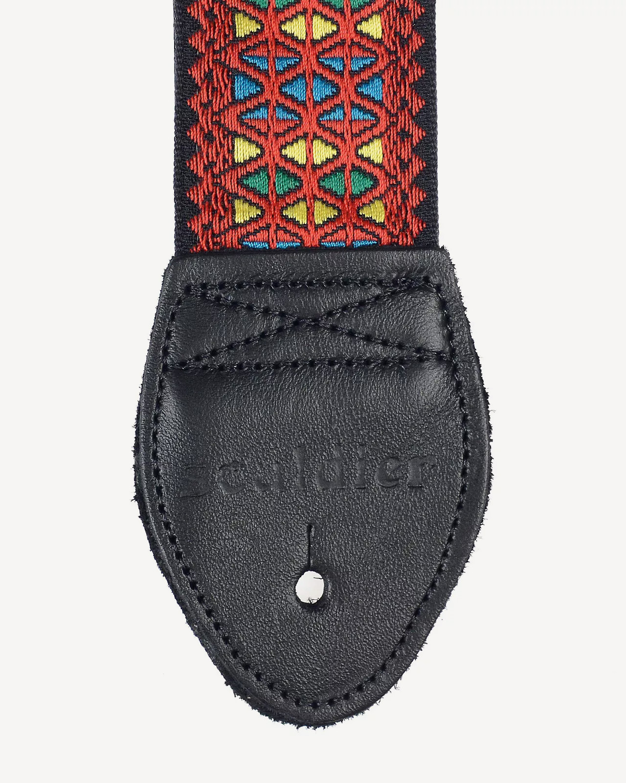 Souldier Montery Yellow/Green/Turquoise/Red Guitar Strap (Black Belt & Black Leather Ends)