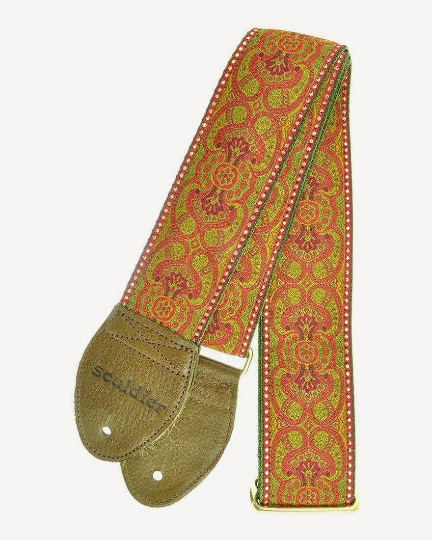 Souldier Arabesque Red Guitar Strap (Olive Drab Belt & Olive Leather Ends)