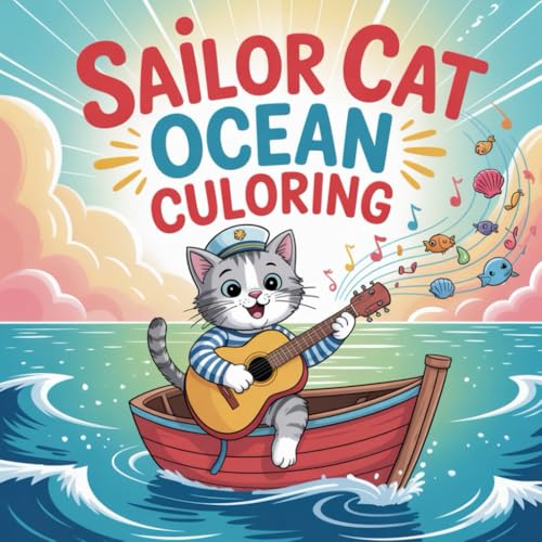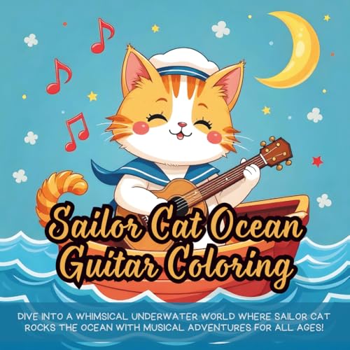 Sailor Cat Ocean Guitar Coloring: Dive into a whimsical underwater world where Sailor Cat rocks the ocean with musical adventures for all ages!