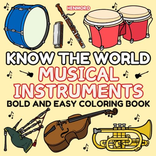 Know The World Musical Instruments: Bold and Easy, Simple and Big Designs Coloring Book to Experience Relaxation and Stress Relief Featuring Guitar, Piano, Drums, Violin, Saxophone, and Many More