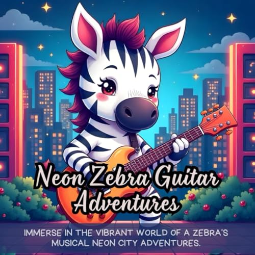 Neon Zebra Guitar Adventures: Immerse in the vibrant world of a zebra's musical neon city adventures.