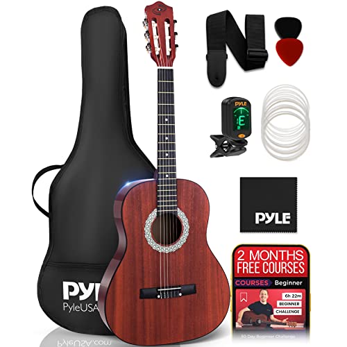 Pyle 6 akustisk gitarr 91 cm juniorset, ¾ storlek nylonsträng trä klassisk Guitarra Acustica för nybörjare ungdomar, barn, pojkar, flickor, tonåringar, vuxen med tillbehörspaket, höger, sapele (PGACLSPI20)
