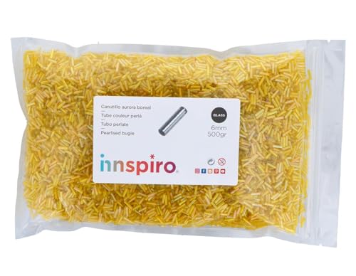 INNSPIRO Glasskallcylinder aurora boreale gul diamant 1,80 x 6 mm 500 g väska armband halsband perfekt för hantverk smycken barn fröpärlor