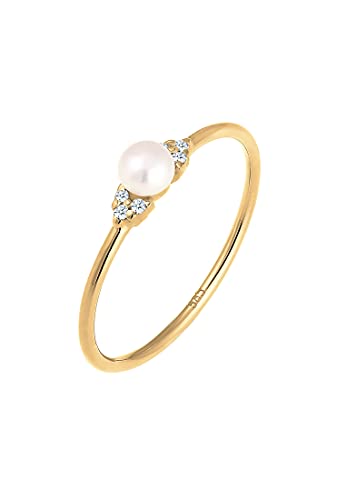 Elli DIAMONDS förlovningsring för kvinnor med pärlor och diamanter (0,03 ct.) i gult guld 585, 56, Gult guld, Diamant