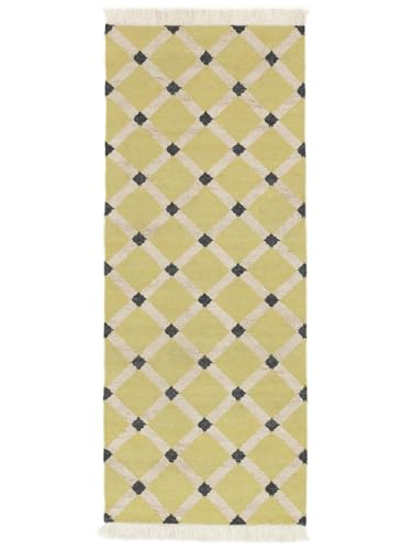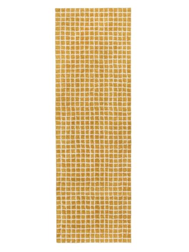 RugVista Krissy, Matta, Moderna mattor, 200 x 80 cm, Rektangulär, Kort lugg, Vardagsrum, Sovrum, Hall, Endast handtvätt, Care & Fair certifierad, Gul