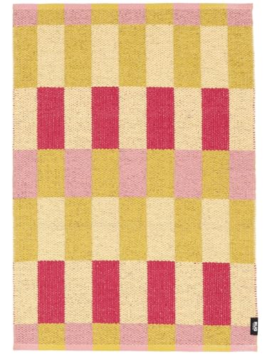 RugVista Favola, Inomhus & utomhusmatta, Moderna mattor, 100 x 70 cm, Rektangulär, Kort lugg, Kök, Hall, Uteplats, Maskintvätt, UV-beständig, Rosa/Gul