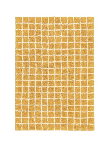 RugVista Linn, Badrumsmatta, Moderna mattor, 90 x 60 cm, Rektangulär, Kort lugg, Vardagsrum, Sovrum, Hall, Maskintvätt, Gul/Vit