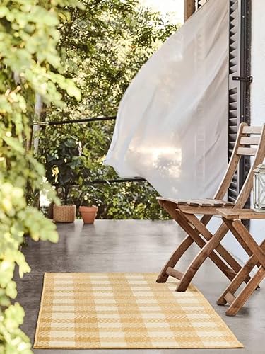 RugVista Gingham, Inomhus & utomhusmatta, 200 x 80 cm, Rektangulär, Medellång lugg, Hall, Uteplats, Endast handtvätt, UV-beständig, Ljus Gul/Vit