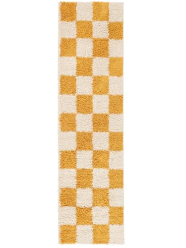 RugVista Chessie, Matta, 300 x 80 cm, Rektangulär, Lång lugg, Vardagsrum, Sovrum, Hall, Endast kemtvätt, oeko_tex_100, Gul/Off Vit