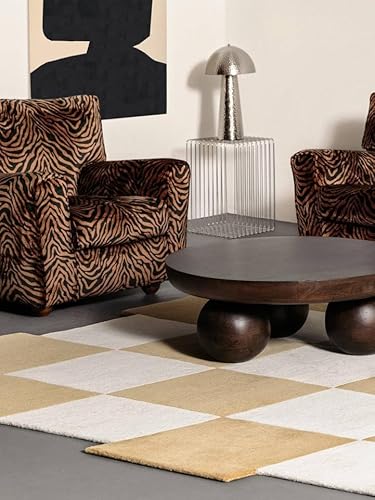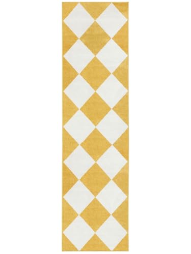 RugVista Checkmate, Dörrmatta, Moderna mattor, 90 x 60 cm, Medellång lugg, Hall, Endast kemtvätt, Care & Fair certifierad, Gul/Vit
