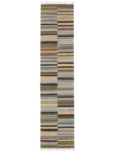 RugVista Solveig, Matta, Kelim Modern, 250 x 80 cm, Rektangulär, Kort lugg, Vardagsrum, Sovrum, Hall, Endast kemtvätt, Care & Fair certifierad, Gul/Vit