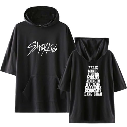 Flyself Unisex Stray Kids T-Shirts gul trä hoodie kortärmade t-shirts blusar för män och kvinnor Bang Chan Changbin Hyunjin Felix Seungmin Jeongin Jisung Minho Woojin, svart, M