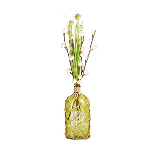 Relaxdays maritime deco-flaska, golvvas 54 cm och stor glaskanna med fiskenät design, jutessladd, vintage tryck, storlek: 54 x 26 x 26 cm, 20 l, gröngul