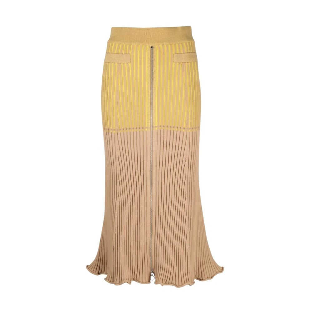 Rabanne, Kjolar , Dam, L, Bomull, Räfflad Stickad Midi Kjol Gul/Kamel