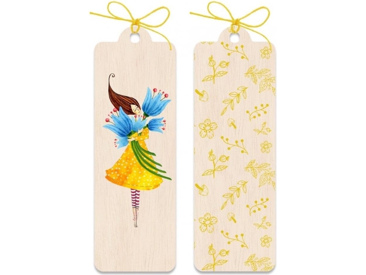 Träbokmärke Kvinna I Gul Klänning