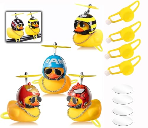 Guidre Perhk Pack med 4 gummi gul anka bil ornament, cool cykel klocka dekorationer med elica hjälm för vuxna barn
