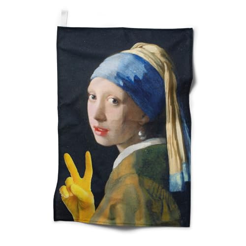 IF torr humor – kökshandduk – flickan med en gul handske