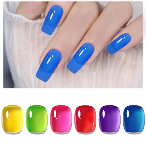 INPING UV nagellack gelé neon, 6 färger limegrön gul rosa blå röd violett gel nagellack UV kristall transparent polis, vår sommar gelnaglar blötläggning av UV för kvinnor hem gör-det-själv nagelsalong