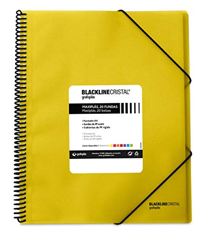 Grafoplas 39832260 Mappar Spiralfodral, Färg Gul, A4, 20 Överdrag, Maxiplas Blackline Kristall