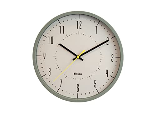 FISURA – Original grå väggklocka Modern köksklocka Grå och gul väggklocka 30 centimeter i diameter. ABS och kristall. 1 AA batteri
